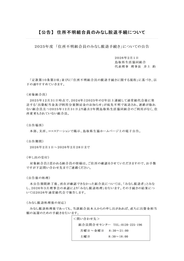 住所不明組合員のみなし脱退手続について